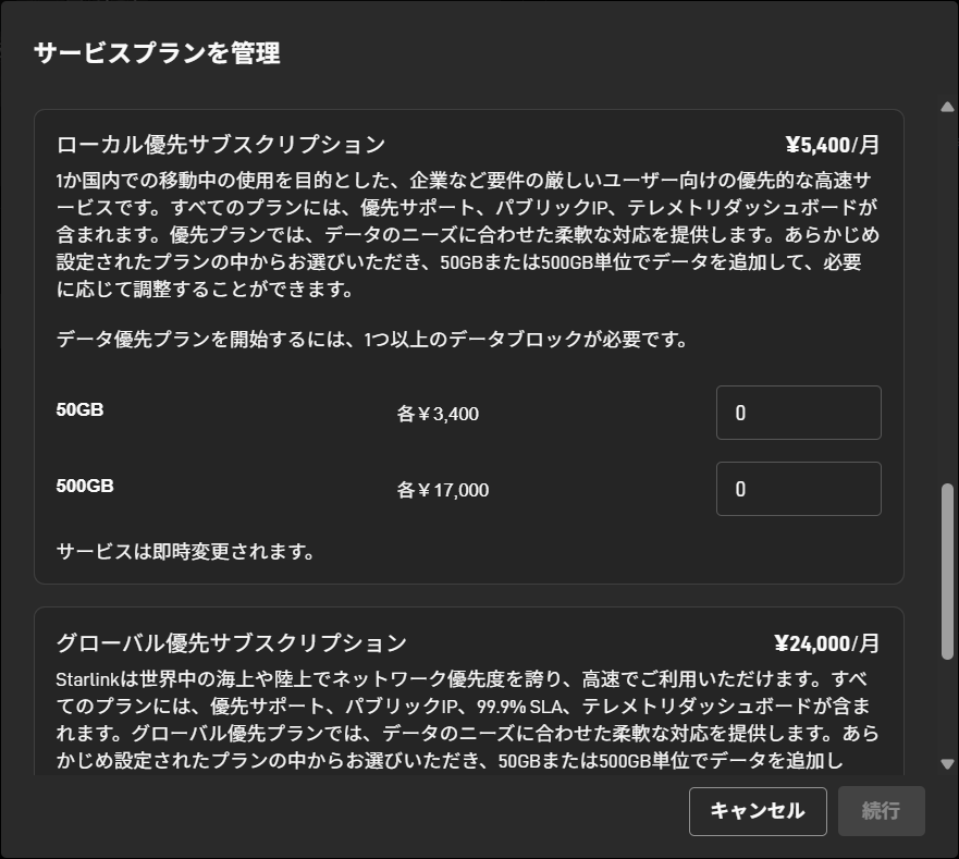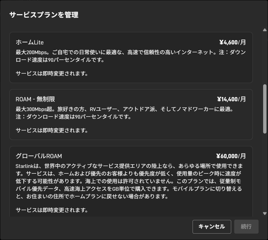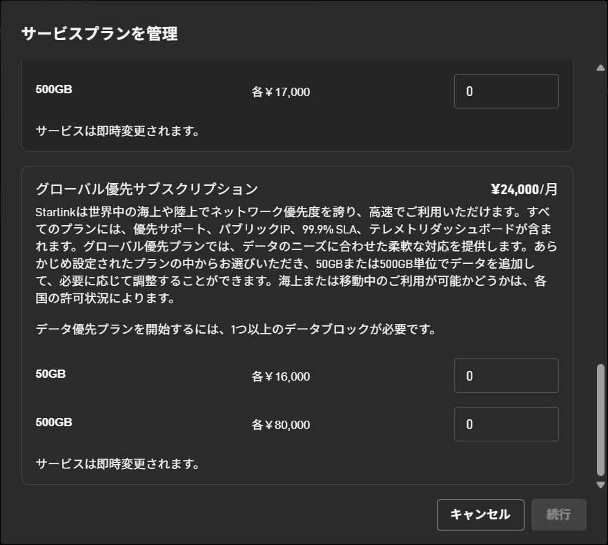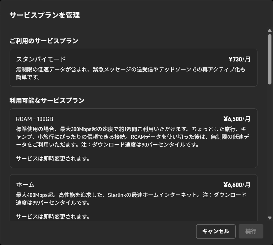 つまり、使用せずに730円のスタンバイモードのスターリンクを一時的に使うためにプランの変更を行います。