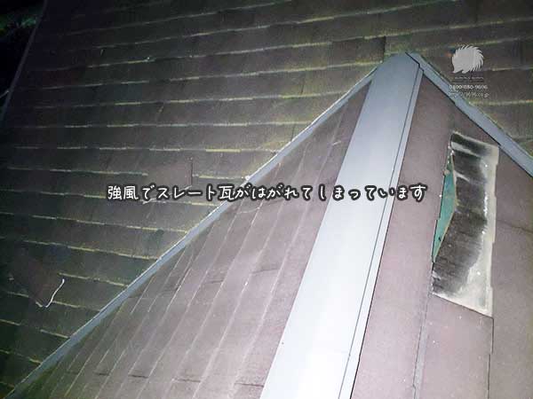 アンテナの倒壊でお伺いした家で、スレート瓦が風ではがれてしまっていました