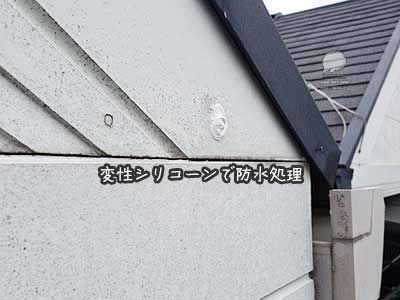 仕上げに屋外用変性シリコーンコーキングを塗り付けて防水処理をします