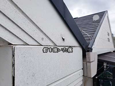 抜けかかっているものに関しては、打ち込むか、ゆるい場合は引き抜いてしまって防水処理をするのがいいでしょう。